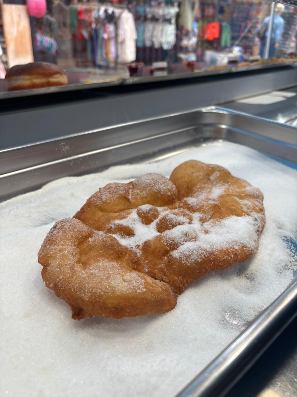Cette pâte légère, montée et cuite sur place, donne un résultat doré et aérien, saupoudré de sucre pour un goût sucré parfait.